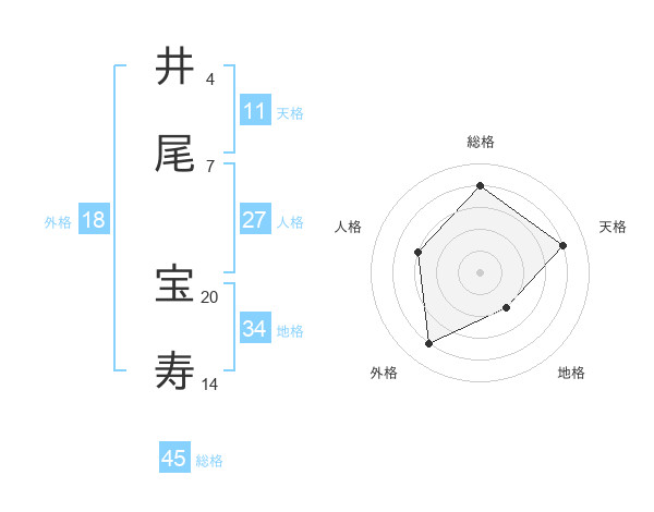 井尾 宝寿さんの総格は45画の4点!
