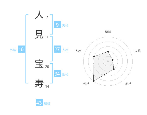 人見 宝寿さんの総格は43画の2点!