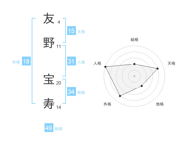 友野 宝寿さんを姓名の画数から五運を鑑定