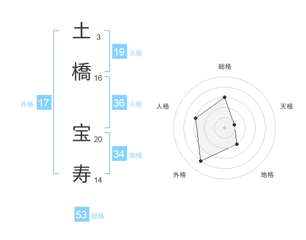 土橋 宝寿さんを姓名の画数から五運を鑑定