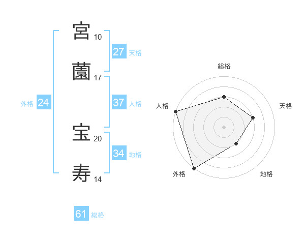 宮薗 宝寿さんを姓名の画数から五運を鑑定
