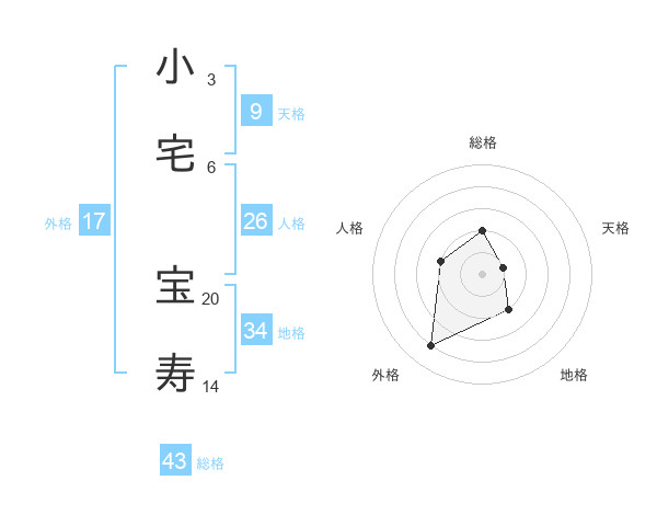 小宅 宝寿さんの総格は43画の2点!