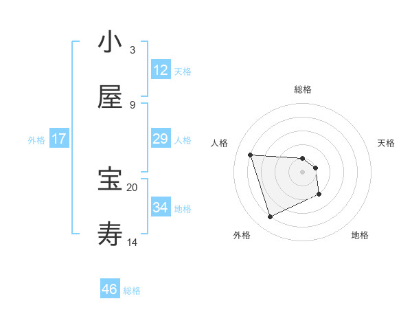 小屋 宝寿さんの総格は46画の1点!