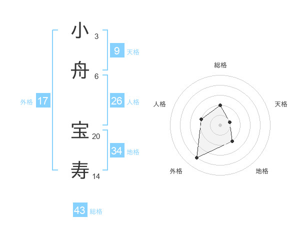 小舟 宝寿さんを姓名の画数から五運を鑑定