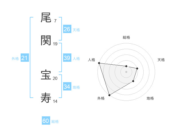 尾関 宝寿さんの外格は21画の5点!