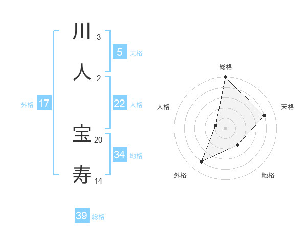 川人 宝寿さんを姓名の画数から五運を鑑定