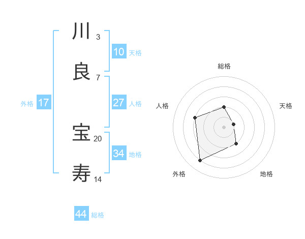 川良 宝寿さんの総格は44画の2点!