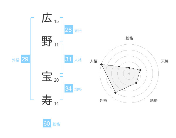 広野 宝寿さんを姓名の画数から五運を鑑定