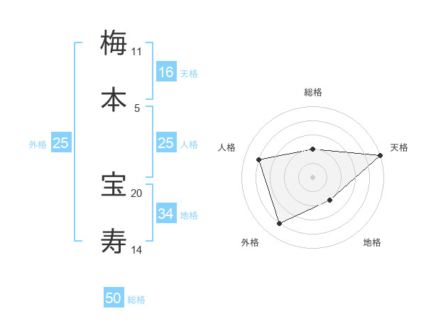 梅本 宝寿さんの総格は50画の2点!