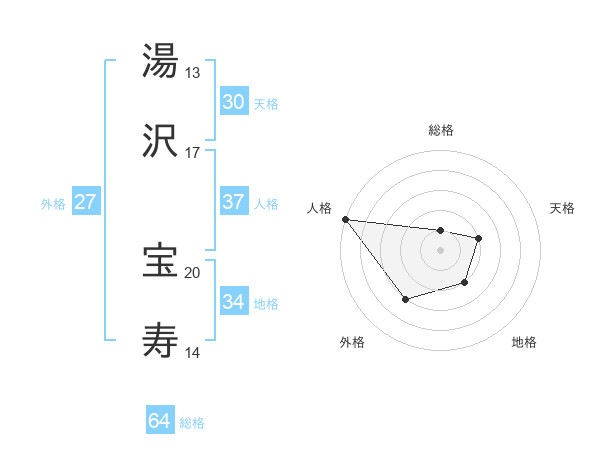湯沢 宝寿さんの人格は37画の5点!
