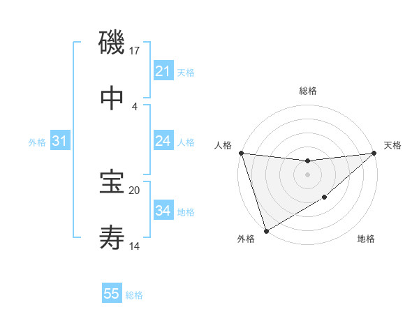 磯中 宝寿さんを姓名の画数から五運を鑑定