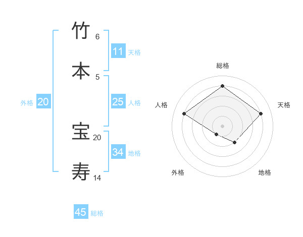 竹本 宝寿さんの総格は45画の4点!