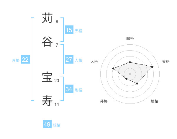 苅谷 宝寿さんの総格は49画の2点!