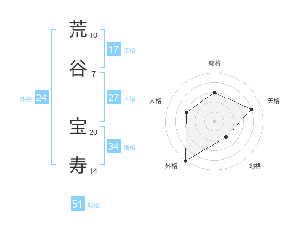 荒谷 宝寿さんの総格は51画の3点!