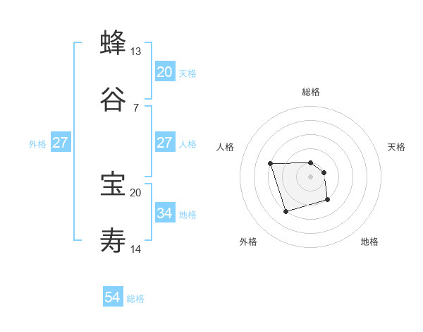 蜂谷 宝寿さんの総格は54画の1点!