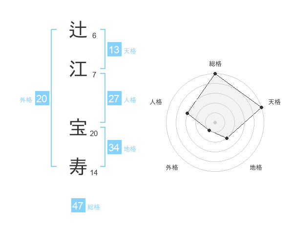 辻江 宝寿さんの総格は47画の5点!