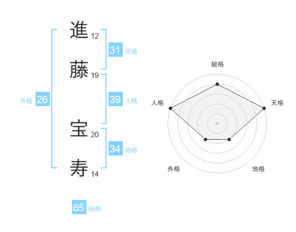 進藤 宝寿さんの総格は65画の4点!