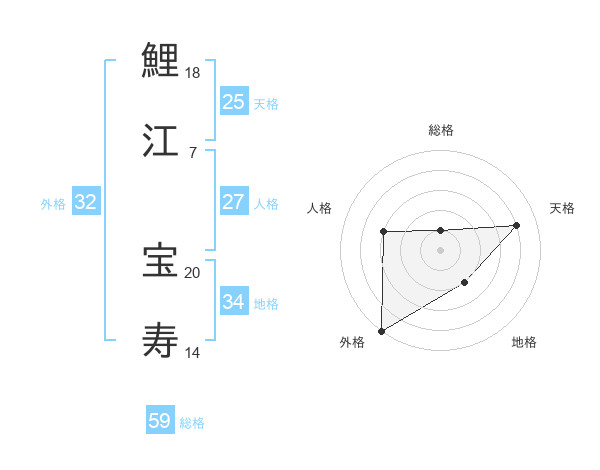 鯉江 宝寿さんの外格は32画の5点!