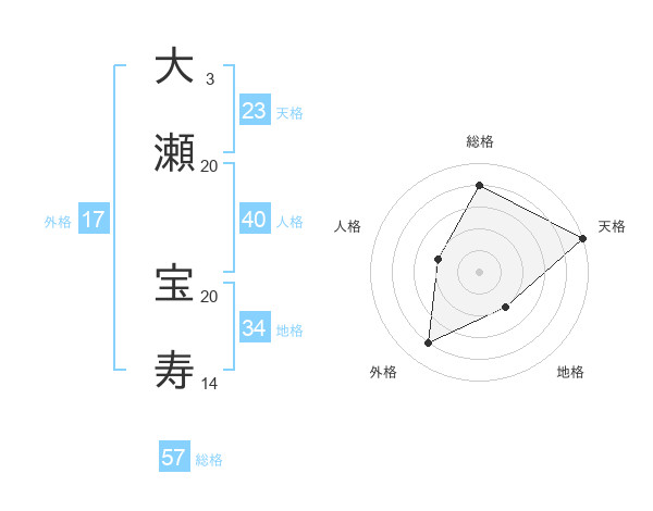 大瀬 宝寿さんを姓名の画数から五運を鑑定