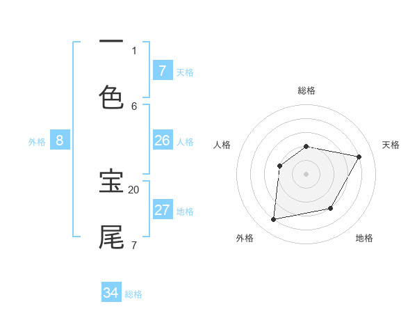 一色 宝尾さんを姓名の画数から五運を鑑定