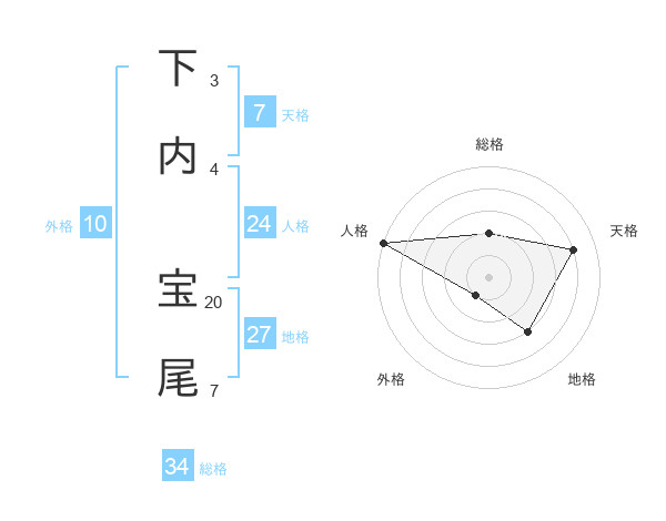 下内 宝尾さんの総格は34画の2点!