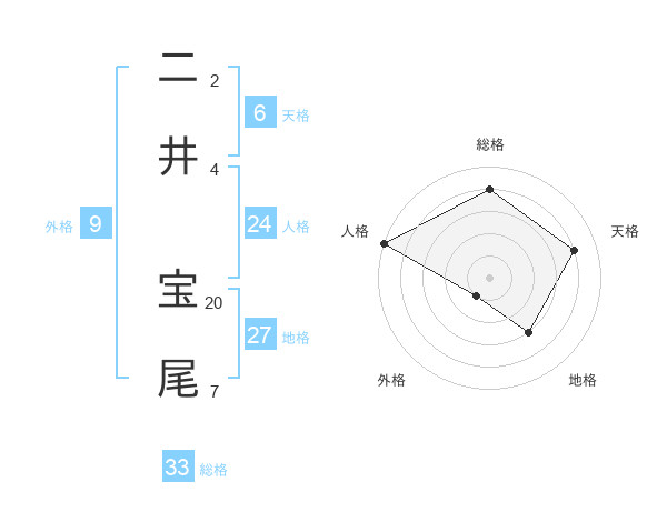 二井 宝尾さんを姓名の画数から五運を鑑定