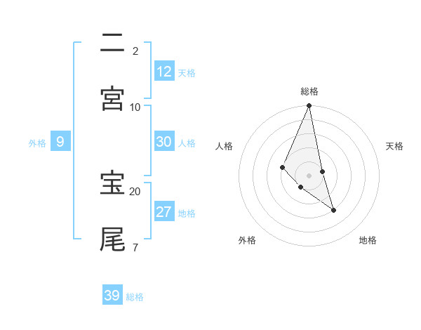 二宮 宝尾さんを姓名の画数から五運を鑑定