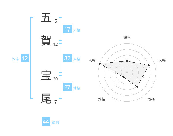 五賀 宝尾さんを姓名の画数から五運を鑑定