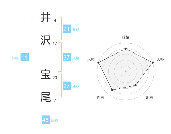 井沢 宝尾さんの総格は48画の4点!