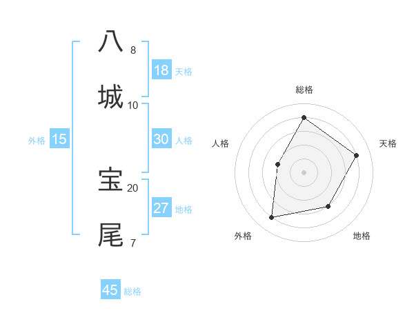 八城 宝尾さんを姓名の画数から五運を鑑定