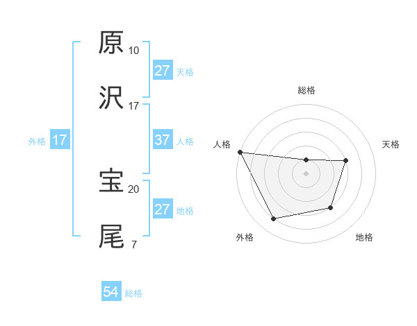 原沢 宝尾さんの人格は37画の5点!