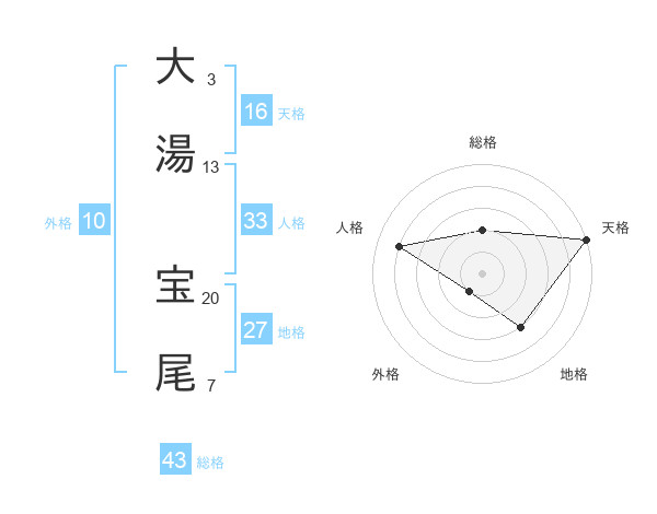 大湯 宝尾さんの総格は43画の2点!