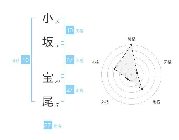 小坂 宝尾さんを姓名の画数から五運を鑑定