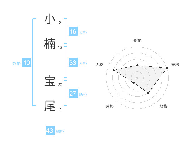 小楠 宝尾さんの総格は43画の2点!