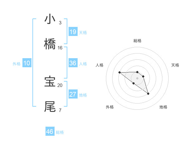 小橋 宝尾さんを姓名の画数から五運を鑑定