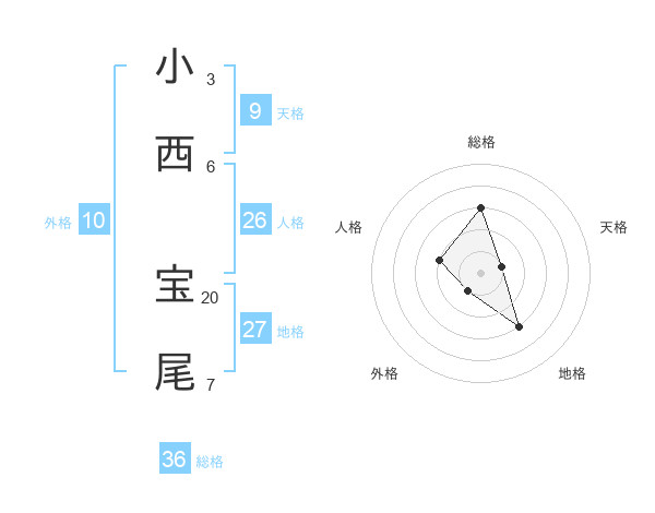 小西 宝尾さんの総格は36画の3点!