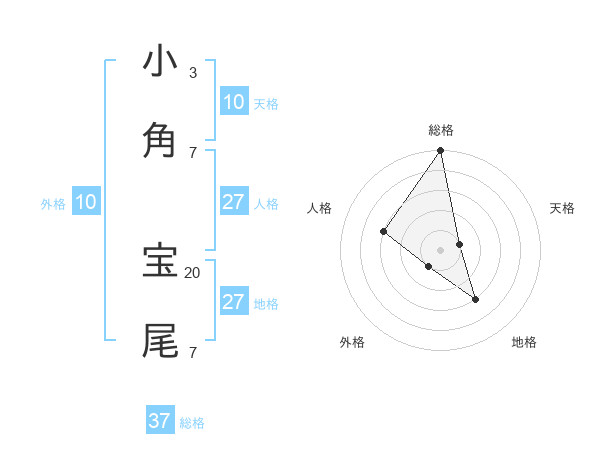 小角 宝尾さんを姓名の画数から五運を鑑定