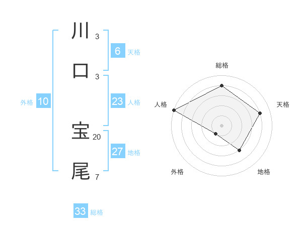 川口 宝尾さんを姓名の画数から五運を鑑定