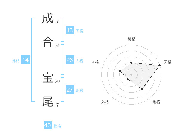 成合 宝尾さんを姓名の画数から五運を鑑定