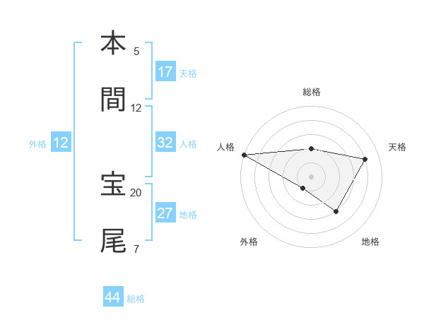 本間 宝尾さんを姓名の画数から五運を鑑定