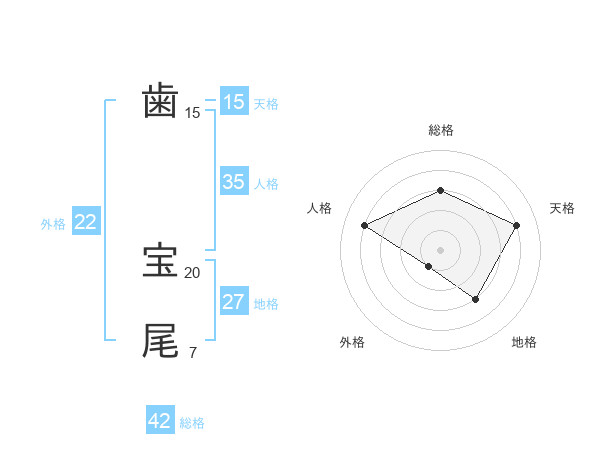 歯 宝尾さんを姓名の画数から五運を鑑定