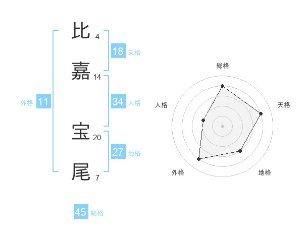 比嘉 宝尾さんの総格は45画の4点!