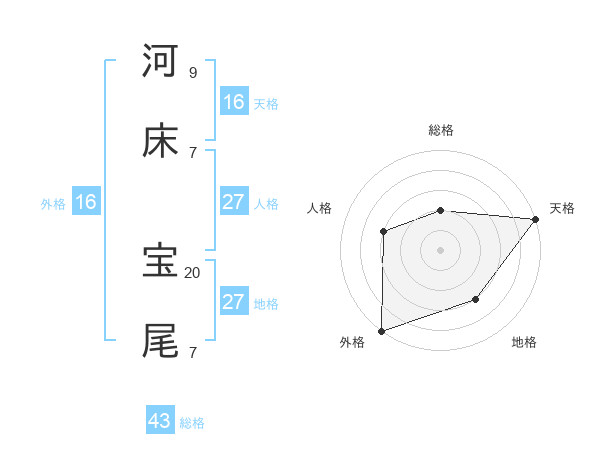 河床 宝尾さんを姓名の画数から五運を鑑定