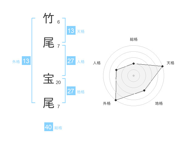 竹尾 宝尾さんの天格は13画の5点!