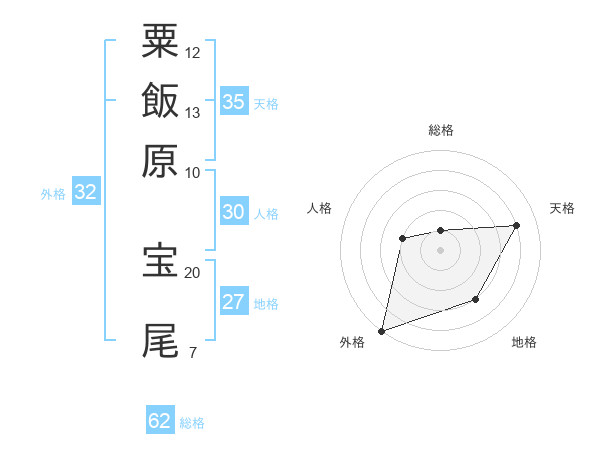 粟飯原 宝尾さんを姓名の画数から五運を鑑定
