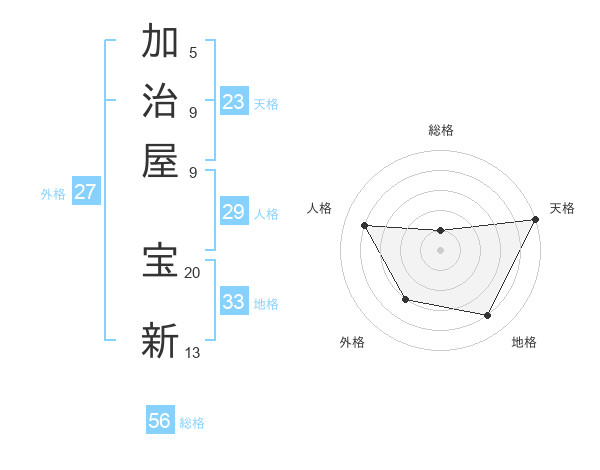 加治屋 宝新さんを姓名の画数から五運を鑑定