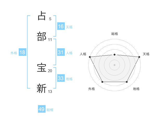 占部 宝新さんの天格は16画の5点!