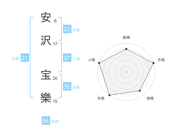 安沢 宝樂さんを姓名の画数から五運を鑑定