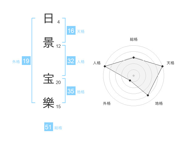 日景 宝樂さんの総格は51画の3点!