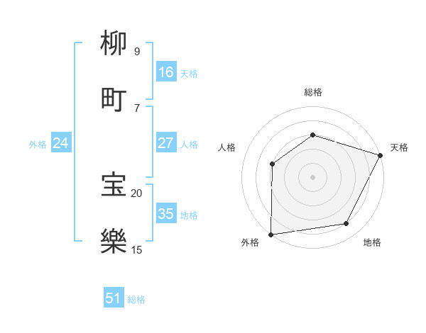 柳町 宝樂さんの総格は51画の3点!